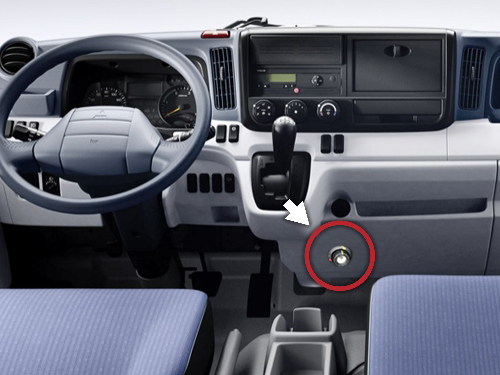 Fuso Canter DEFEND hidden gearshift lock, especially designed for your car, was developed completely. Please contact Mitsubishi branch, or DEFEND GROUP with the toll-free service number 080-080-0101 for installation.