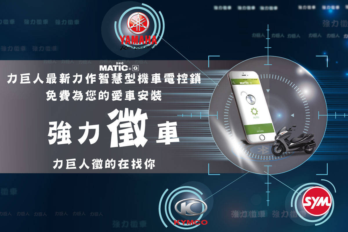 力巨人最新力作【MATIC G 智慧型機車電控鎖】 免費試裝活動登場!! 即日起至2022/5/15前,只要按讚力巨人FB粉絲團,就有機會獲得免費試裝機會,數量有限!!快手刀衝刺報名阿~~ 更多活動詳情,請上FB搜尋「力巨人安全防衛隊」