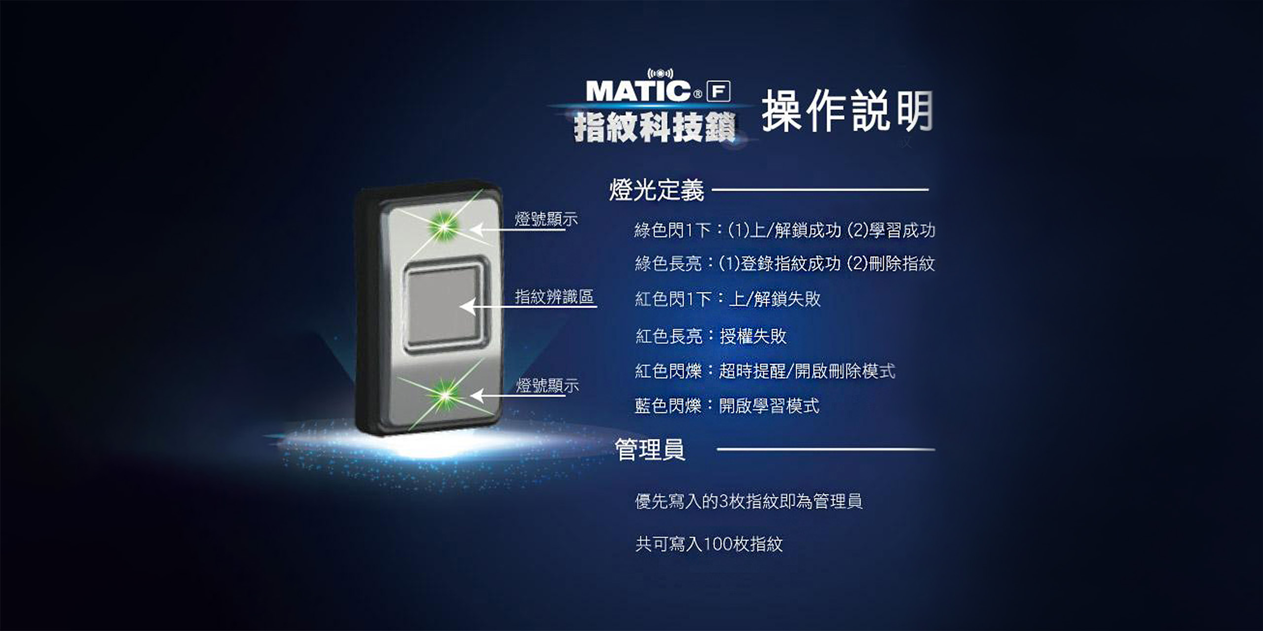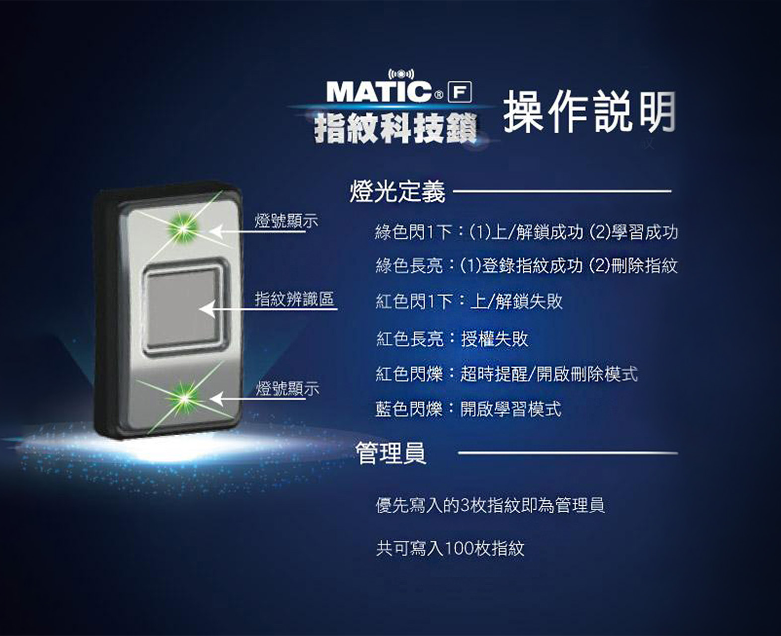 - 可註冊指紋枚數:100