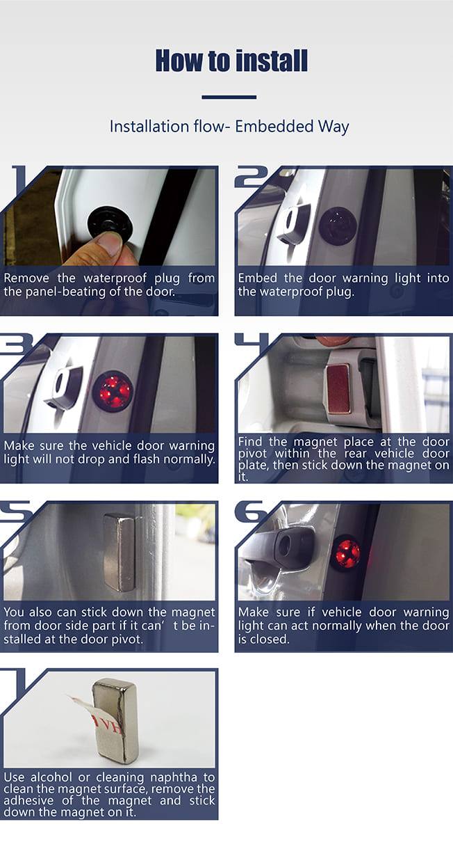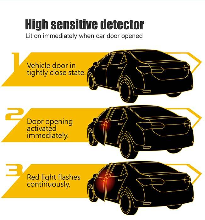 - High-sensitivity detection that starts flashing immediately when the door is opened.