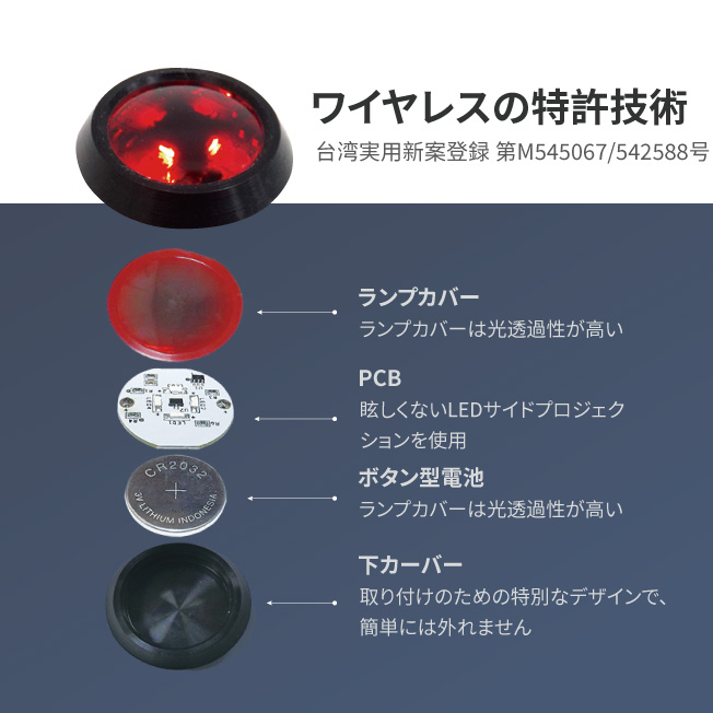 - 4つのLEDで警告効果を向上させ、省エネルギー回路が搭載